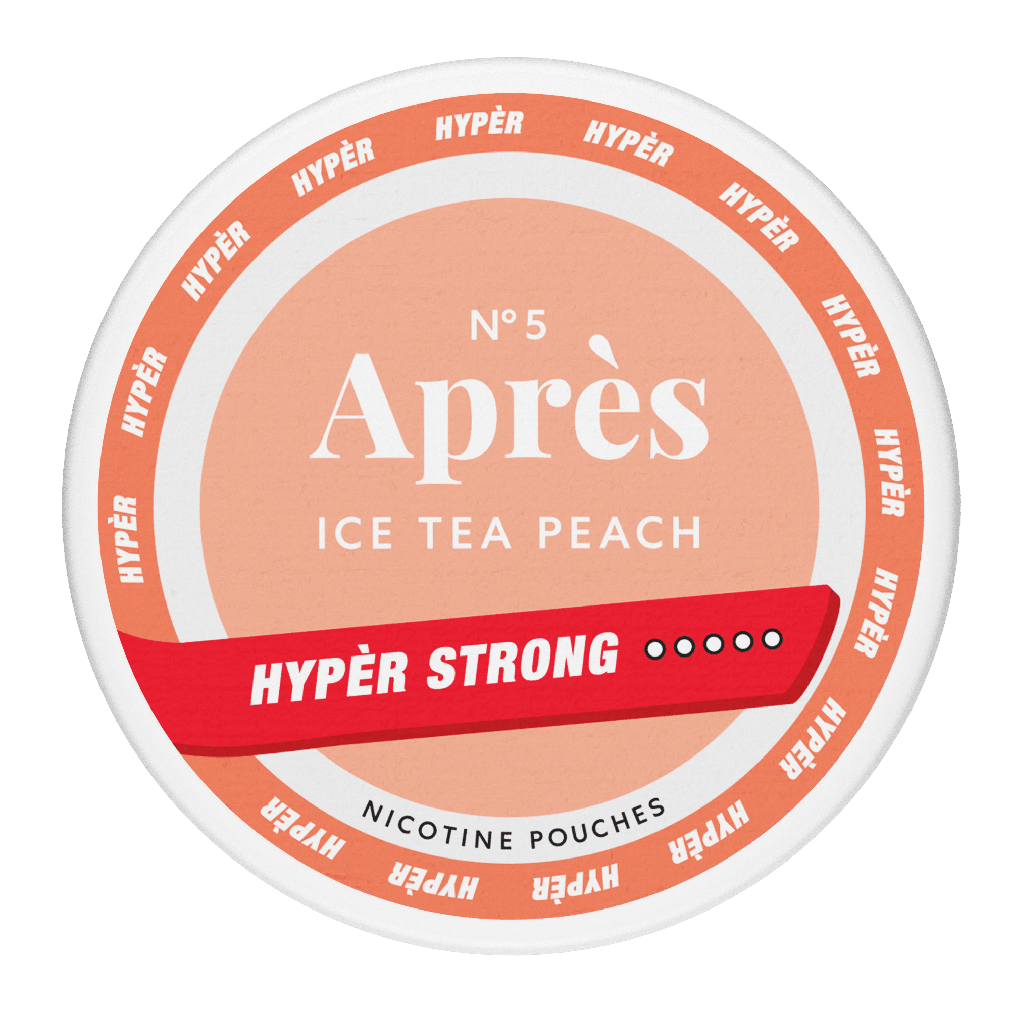 Après Ice Tea Peach No.5 Hyper Strong – is a tobacco-free white nicotine pouch created by the Swedish brand Après, known for its bold flavors and modern design. Produced by Après Nicotine AB, this pouch comes in a slim format for a discreet and comfortable fit, perfect for everyday use.