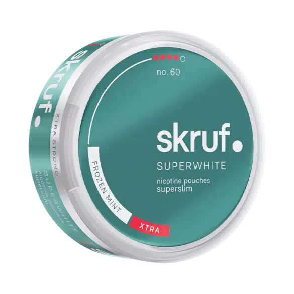 Skruf Super White no 60 Frozen Mint – The name says it all. This is literally a shoot of fresh intense mint. With a nicotine content of 18 milligrams per gram this is one of the strongest white pouches on the market.