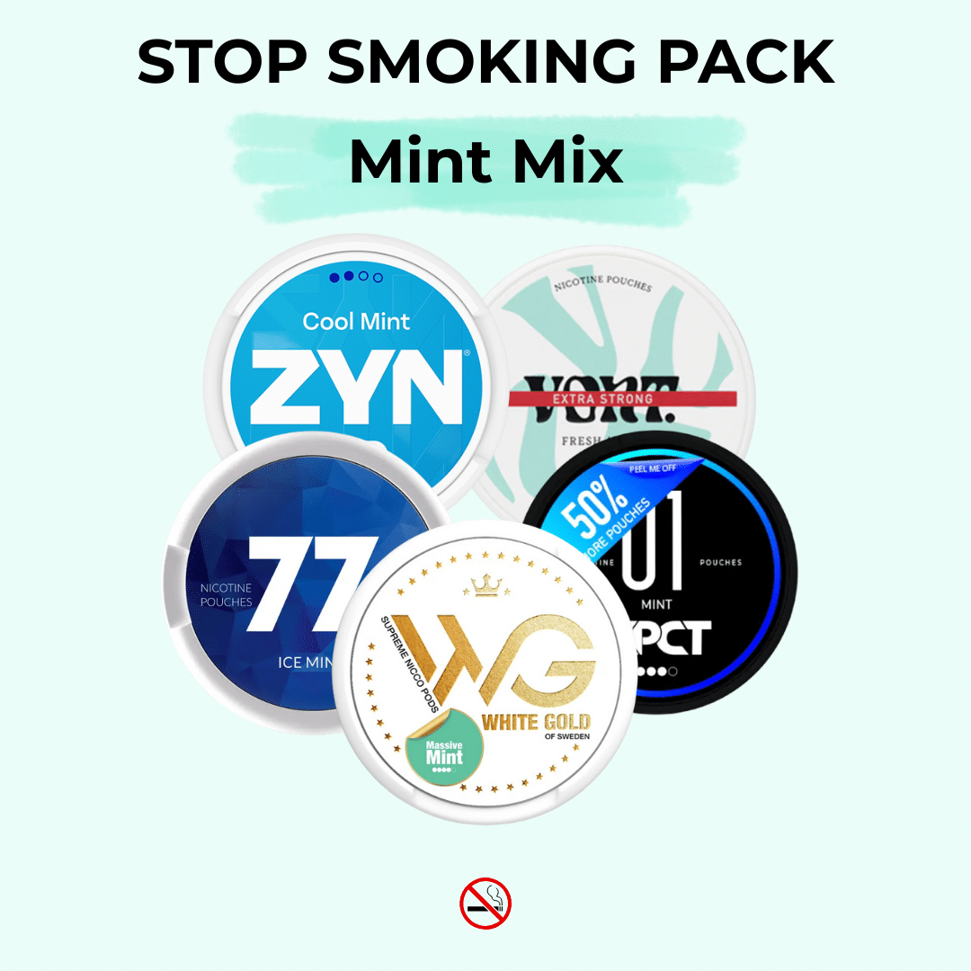 Quitting smoking is one of the best decisions you can make for your health — and switching to nicotine pouches can help you get there. Unlike cigarettes, nicotine pouches are smoke-free, meaning no combustion, no smoke, and no harmful tar. Research shows that nicotine pouches is a significantly less harmful alternative to smoking, making it a popular choice for smokers who want to reduce health risks while still enjoying nicotine. We have created a carefully designed stop smoking kit with five different nicotine pouch strengths, all in a fresh mint flavor. The idea is simple: Start strong then gradually reduce. By beginning with a high-strength nicotine pouch and slowly stepping down to lower strengths, you can reduce your nicotine intake over time — without the smoke, smell, or harmful toxins from cigarettes.