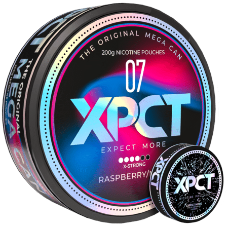 XPCT Raspberry/Mint Mega Can Slim – This Supersized can is too big to carry in your pocket! One mega can equals 20 cans of all white nicotine pouches, equal amount with 2 rolls and comes with a refreshing flavor of Rasperry Mint.
